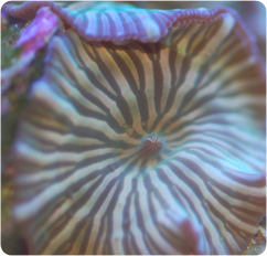 White Striped Mushrooms can have a blue-green tint around the white lines depending on what type of water quality, lighting and supplemental feedings they receive. The green coloration will also intensify with supplemental actinic lighting. Fragments can be taken and grown separately. Allow room to expand.